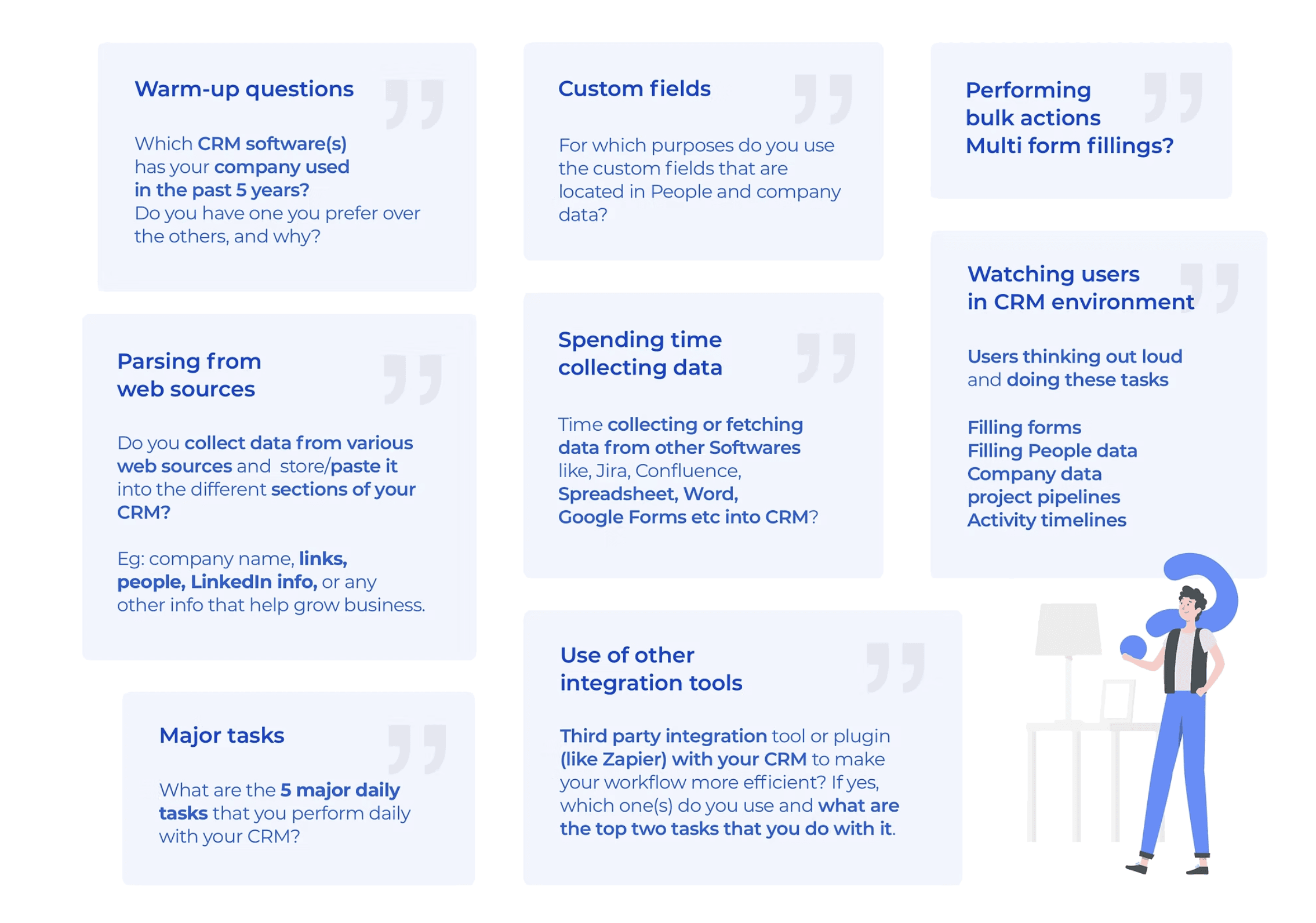 This was one of the most interesting and important part of our analysis. Asking the right questions gives real insight, we prepared a script but there was a lot of imorovisation. I have to say that this part of the process shaped our product the most.