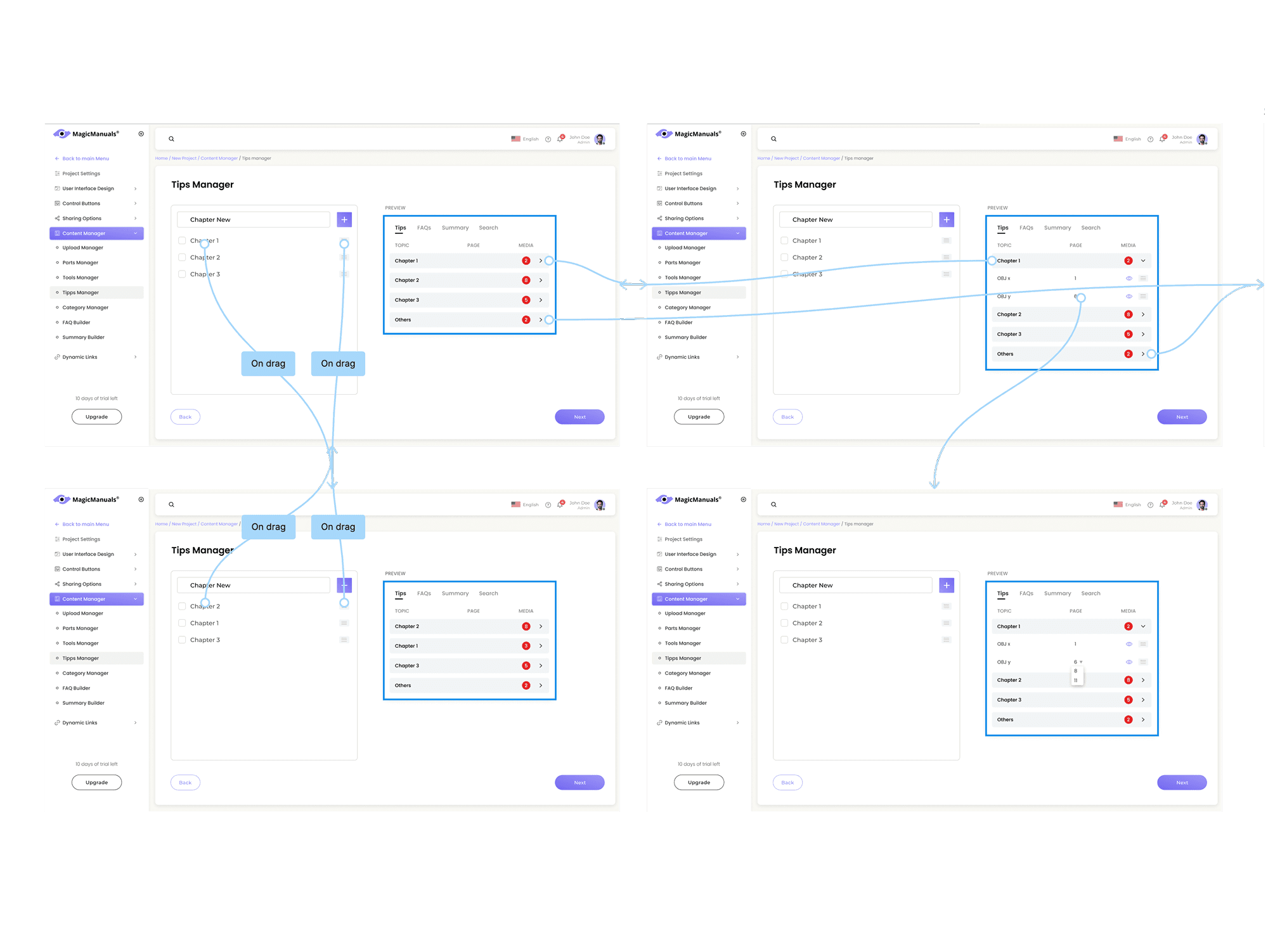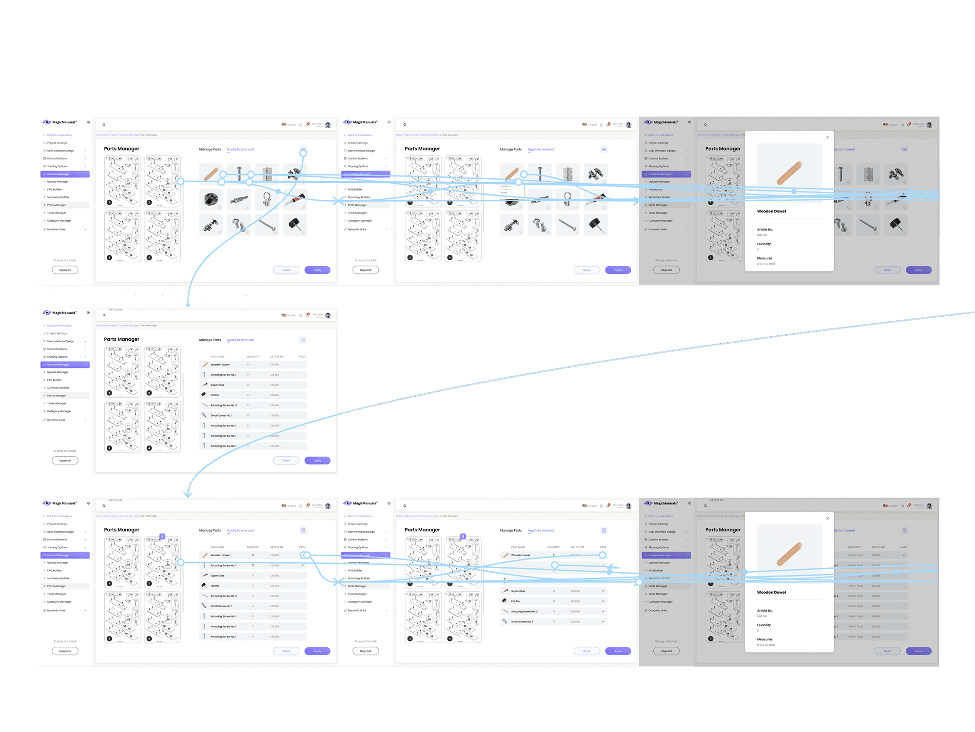 I joined Magic Manuals team as a working student designer. They were working with developers in India, so I also played the role of co-manager of the product. Having a strong idea the leaders of the company demanded that I bring their visions for the product to life - I majorily worked on the UI of the platform , refining the details and adding new features with tight timelines. I made prototypes on figma and coordinated with the Dev team.