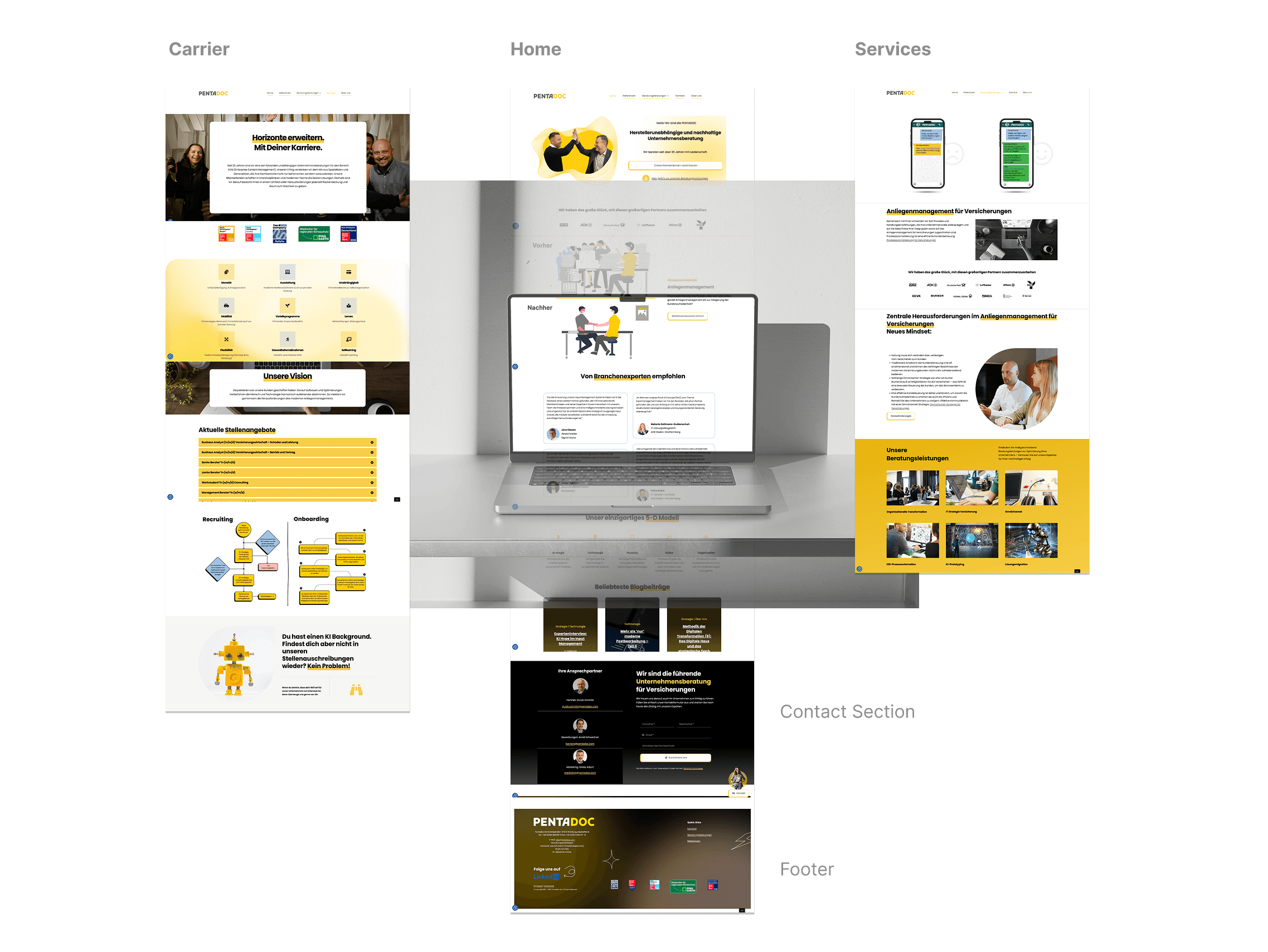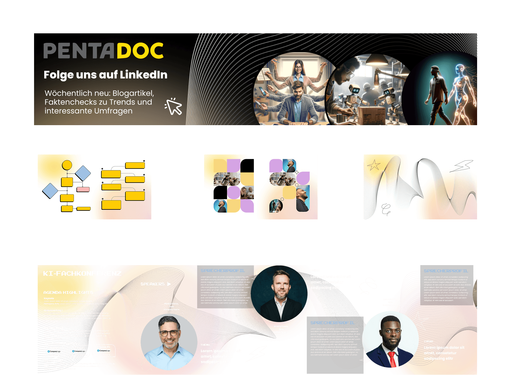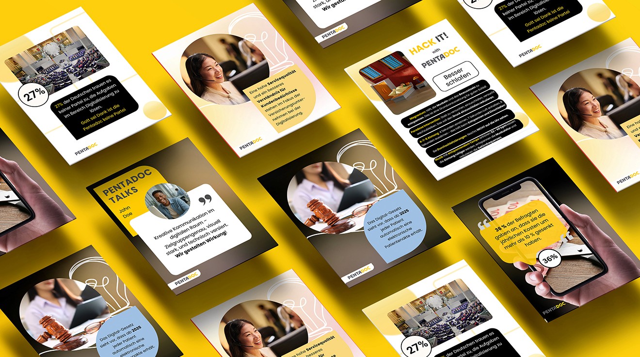 Pentadoc AG is a leading consultancy located in Würzburg, Germany. Working with big insurance dompanies like DAK, DEVK, SIgnal Iduna etc. They seeked a seamless visual communication in their journey of digitalising insurance industry - this is where I supported them creating fluent designs across different media.