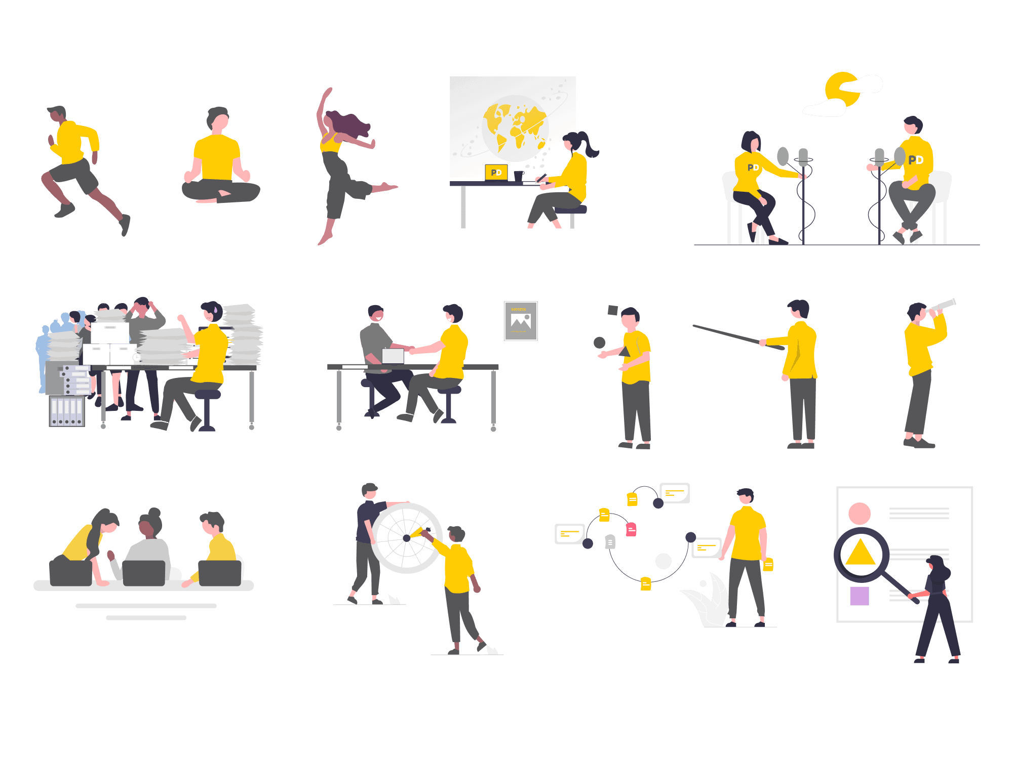 As the Design Lead and the visual communication expert in the company, I was intriduced to a variety of tasks and challenges. As I joined the team as a working student for illlustrating for blog articles my role grew into becoming an expert of meeting constant demand for differnt design material for the employees in the company and creating visual merchandise for events.
